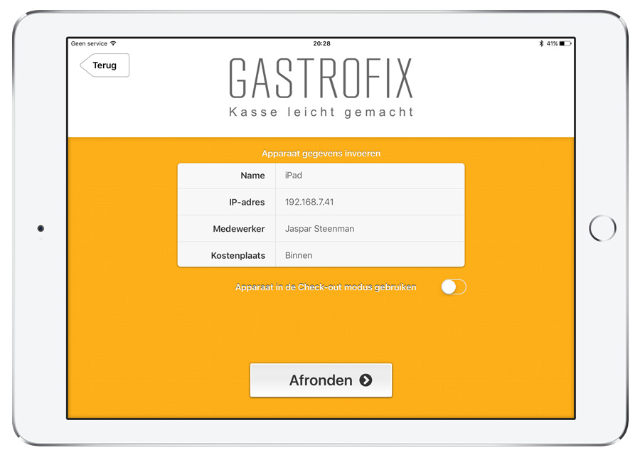 Maakt u gebruik van de check-out mode? Kies dan "Apparaat in de check-out modus gebruiken".