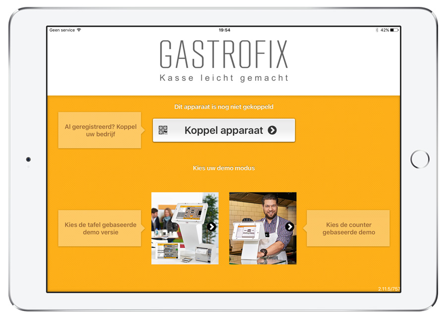Nadat u de GASTROFIX App voor de eerste keer opent ziet u het onderstaande scherm.