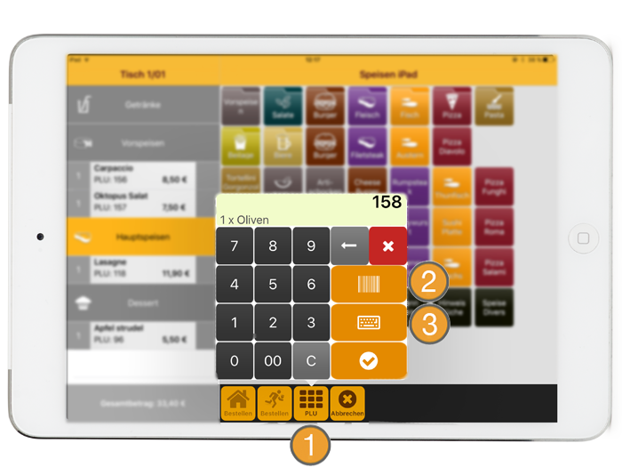 Naast het bestellen met behulp van uw bestelschermen kunt u producten ook aan de hand van het betreffende PLU nummer bestellen.