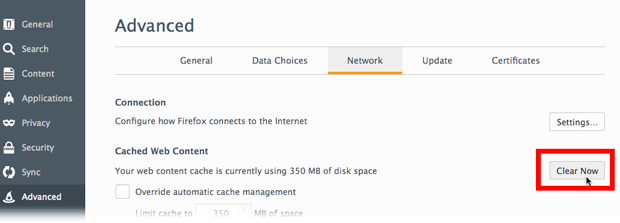 - Klik in de sectie Gebufferde webinhoud op Nu wissen.