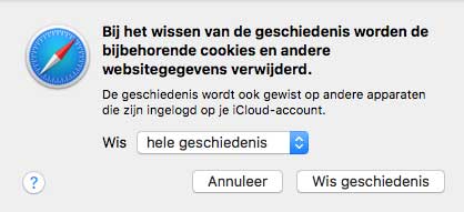 - Kies 'Geschiedenis' > 'Wis geschiedenis en websitegegevens'.