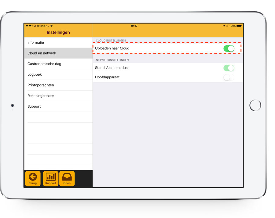 Let op: De uitgebreide en krachtige rapportages in uw cloud kunt u enkel gebruiken wanneer de upload is geactiveerd.