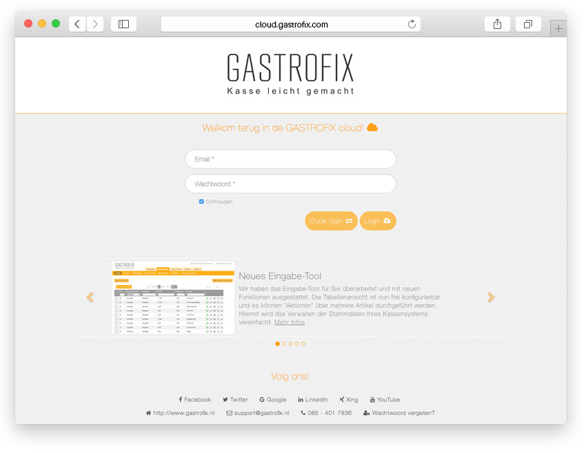U kunt de GASTROFIX Cloud in iedere moderne internet browser openen. Voer hiervoor cloud.gastrofix.com in de adresbalk in.
