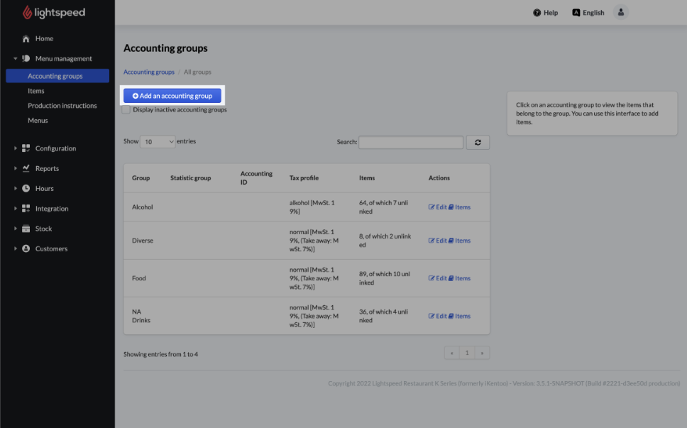 Lightspeed-K Omzetgroepen bewerken en verwijderen