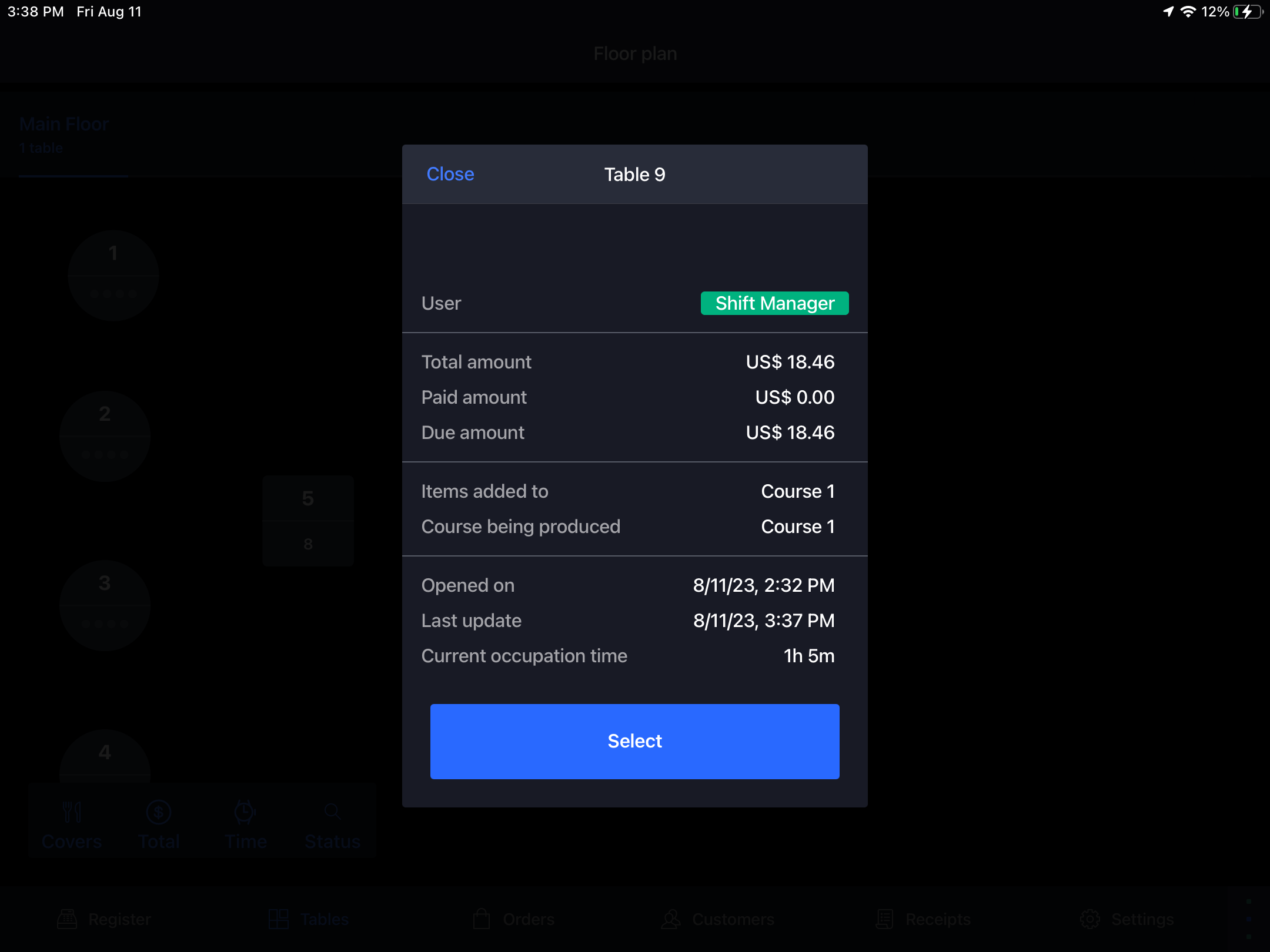 - Bevestig dat dit de juiste tafel is en tik op Selecteren.