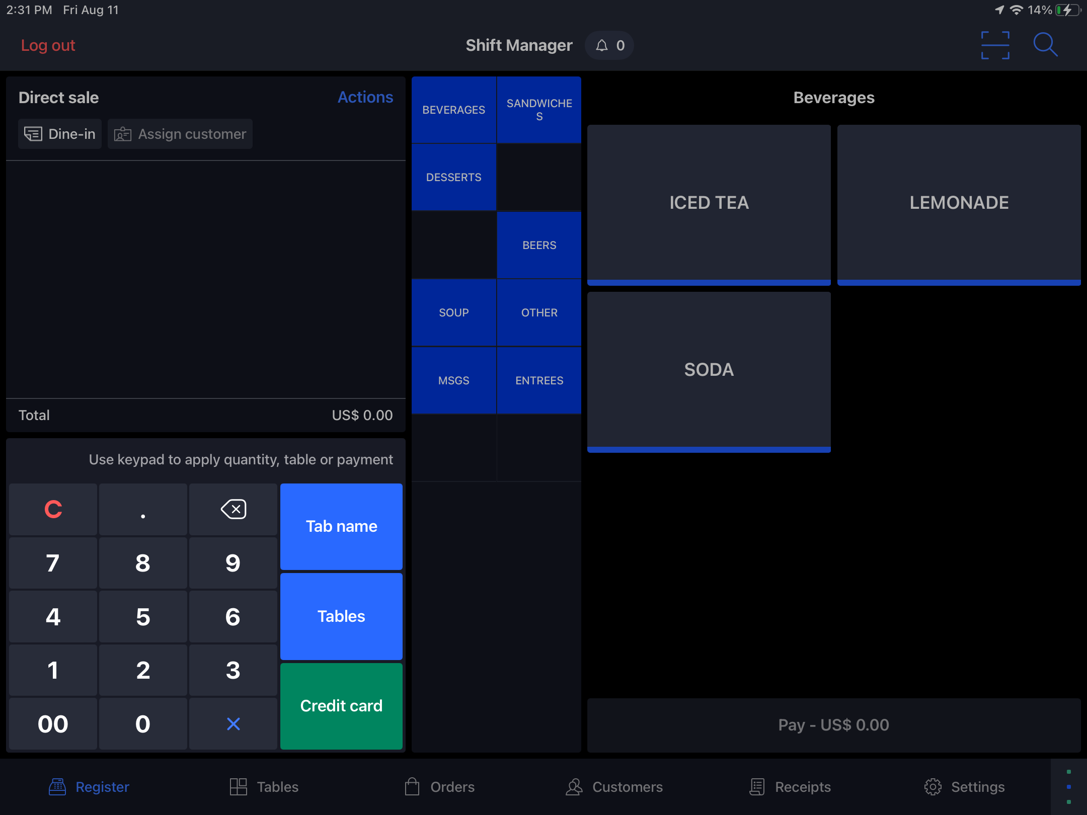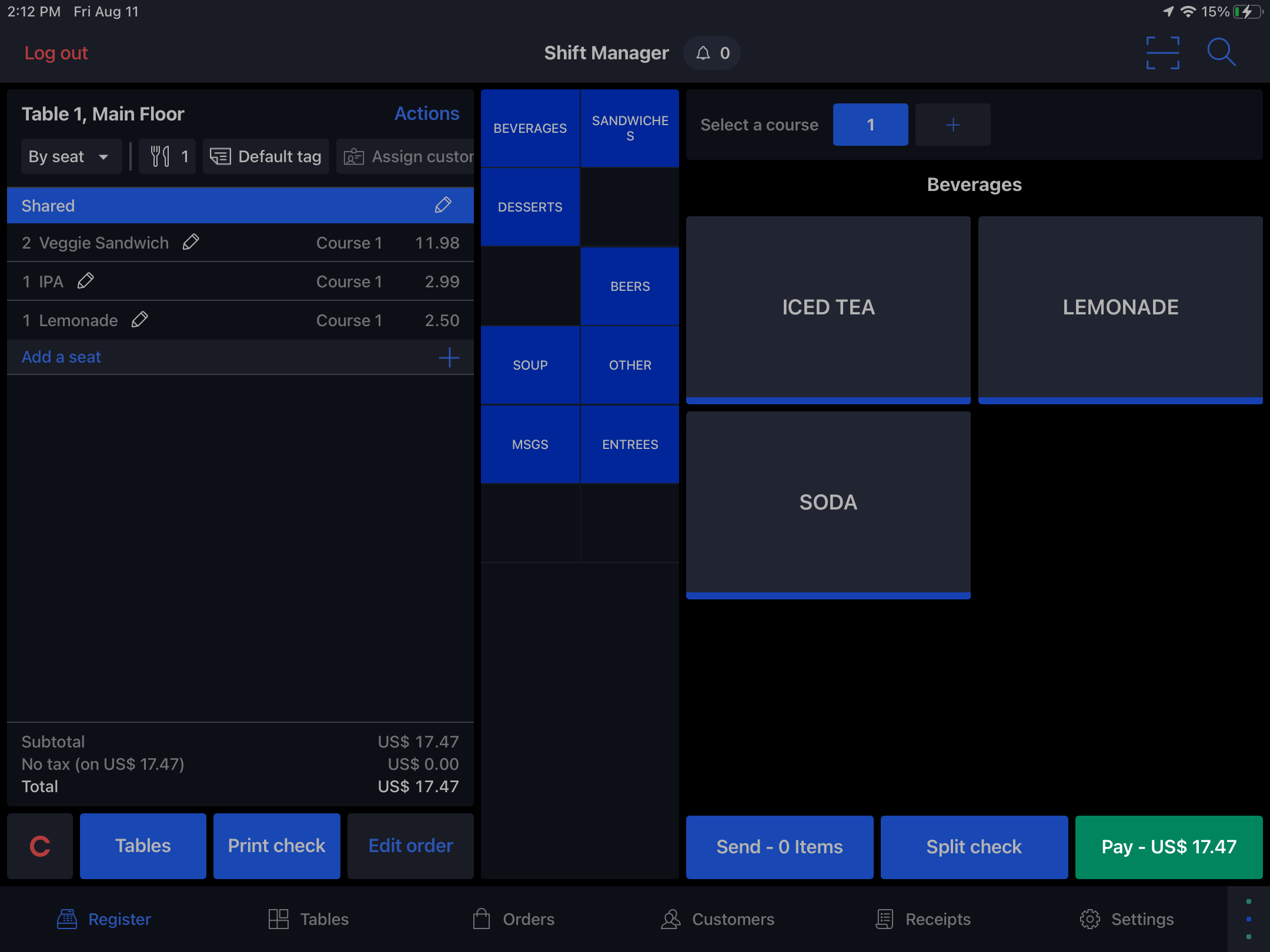 Zodra je de andere configuratiestappen hebt voltooid, zoals het toevoegen van items en het aanmaken van een menu, kun je beginnen met het verwerken van bestellingen via de Lightspeed Restaurant POS-app.