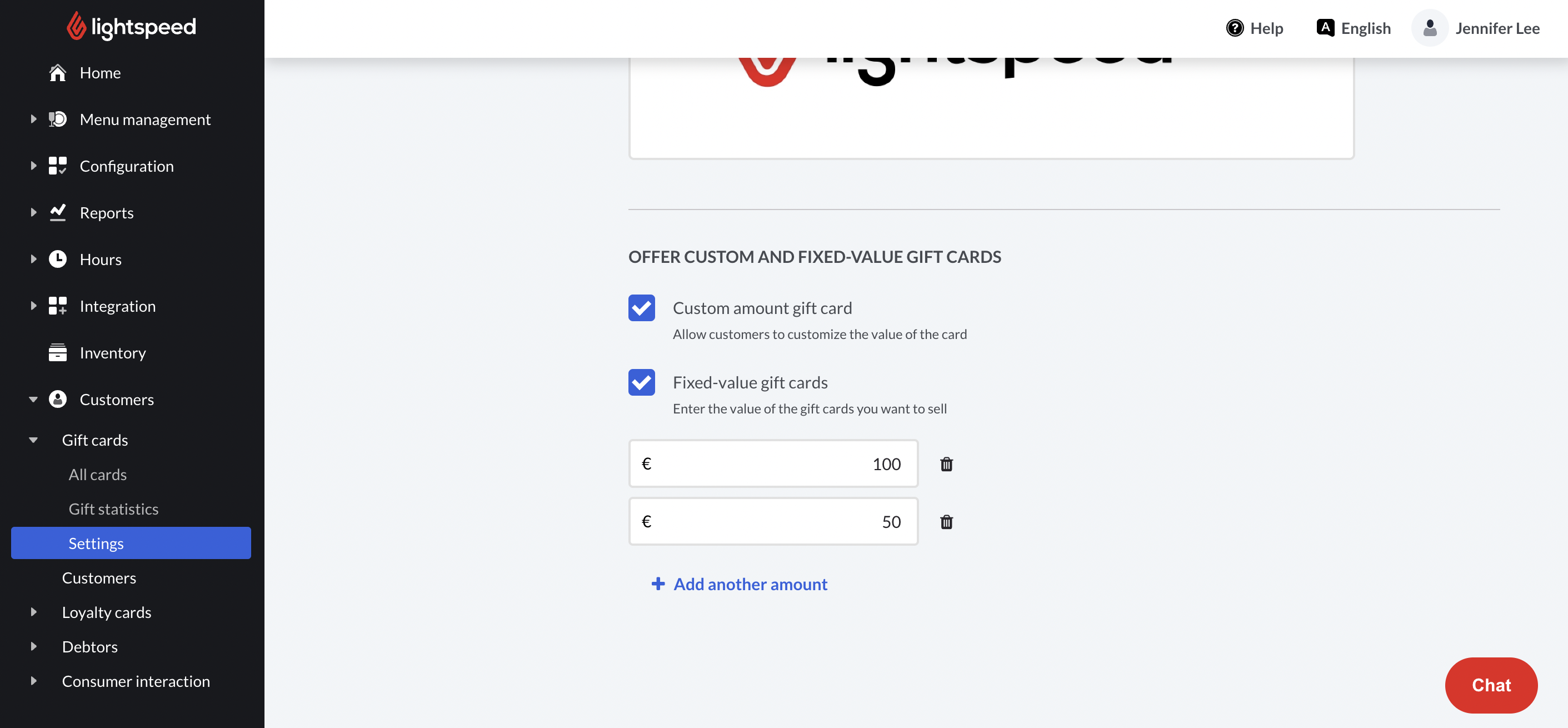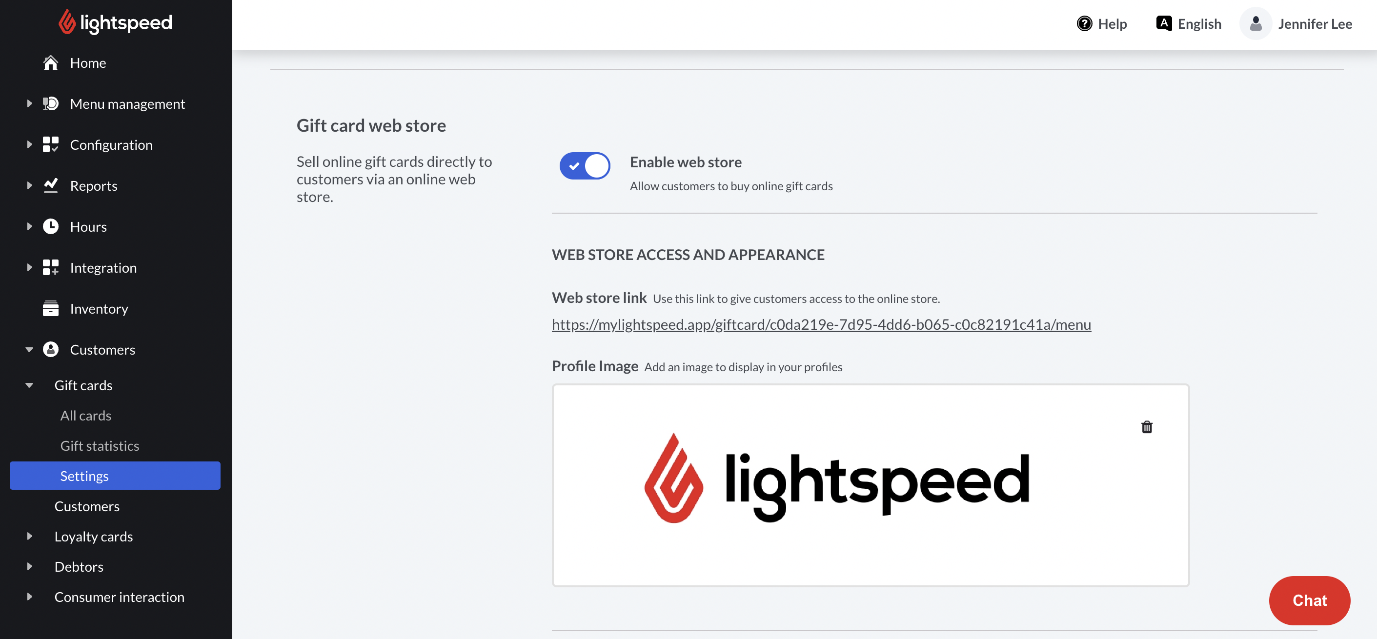 Als je met Lightspeed Payments werkt, kun je cadeaubonnen online verkopen door de webwinkel voor cadeaubonnen in de backoffice in te schakelen en te configureren. Je kunt twee soorten cadeaubonnen online verkopen: Aangepast bedrag en vast bedrag. Zodra je klaar bent met het configureren ervan, deel je de speciale URL van de webwinkel met je klanten. Nadat een klant een cadeaubon heeft gekocht, ontvangt hij een e-mail met een QR-code die hij in de winkel bij de POS kan inwisselen.