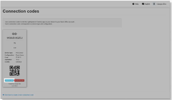 - Ga in het hoofdnavigatiemenu naar Configuratie > Apparaten > Connectiecodes.
