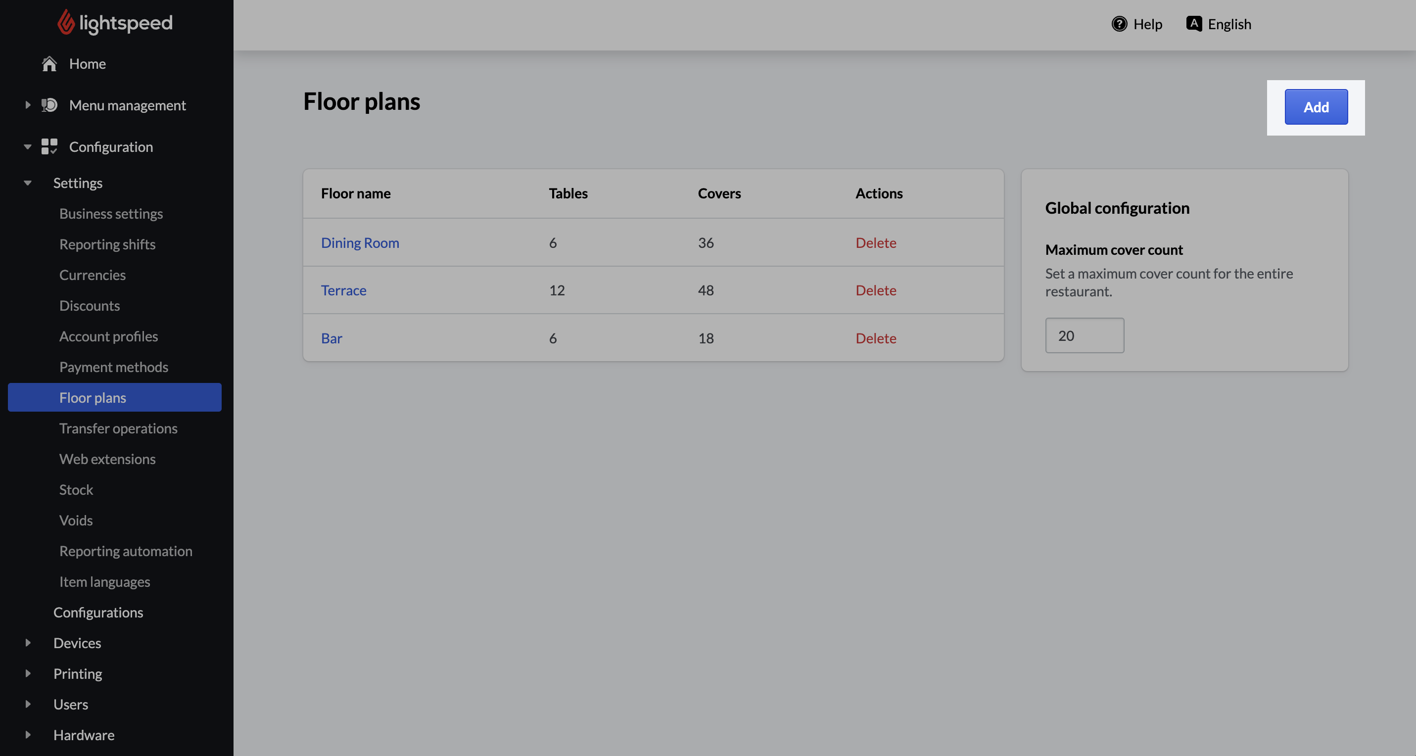 - Klik op Toevoegen om een nieuw vloerplan toe te voegen.