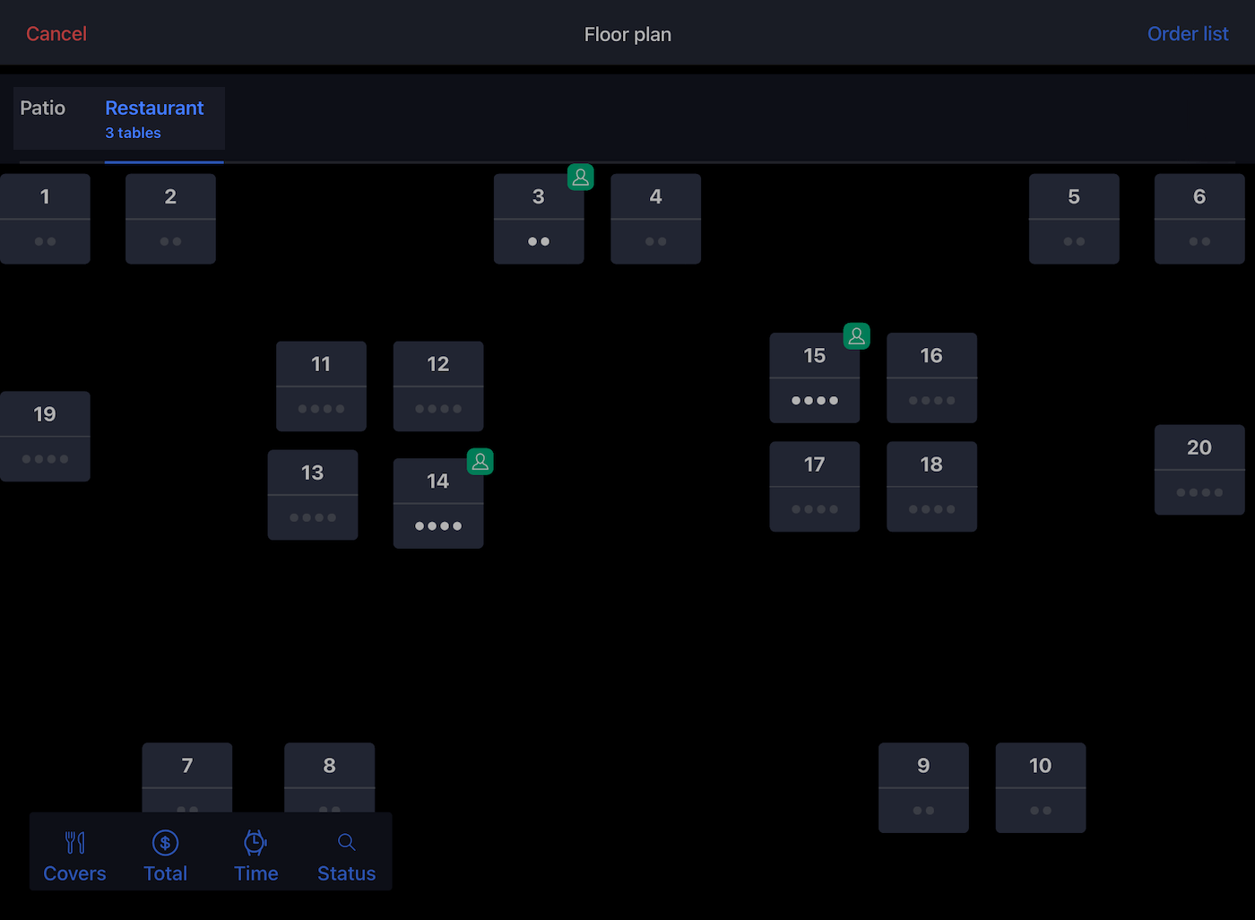 Met het Home-scherm kun je ook een snelle blik werpen op je vloerplannen. Zo kunnen gebruikers zien voor welke tafels er nog bestellingen staan en welke beschikbaar zijn voor nieuwe bestellingen.