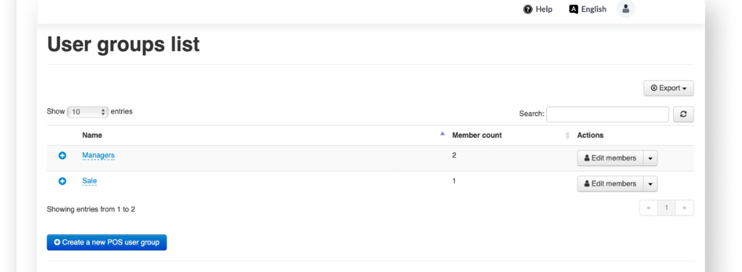 Op de pagina backoffice-gebruikersgroepen kun je gebruikersgroepen toevoegen en bewerken. Je kunt groepsrollen aan groepen toewijzen en POS-gebruikers aan groepen toewijzen. Met gebruikersgroepen kun je de verschillende toegangsniveaus van je werknemers binnen de POS snel sorteren. De gebruikersgroepen worden alleen gebruikt voor POS-gebruikers.