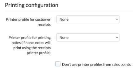 Specificeer enkele printinstellingen voor dit specifieke POS-apparaat. Opmerking: We raden aan om printers ook in te stellen en aan een rekeningprofiel te koppelen vanaf de Configuratiepagina.