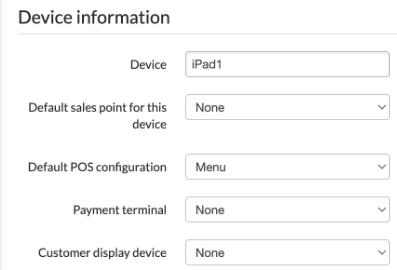 | Standaard POS-configuratie | Geeft de huidige gebruikte POS-configuratie aan. Het personeel kan de instellingen ook rechtstreeks op de iPad wijzigen als zij de juiste toestemmingen hebben. |