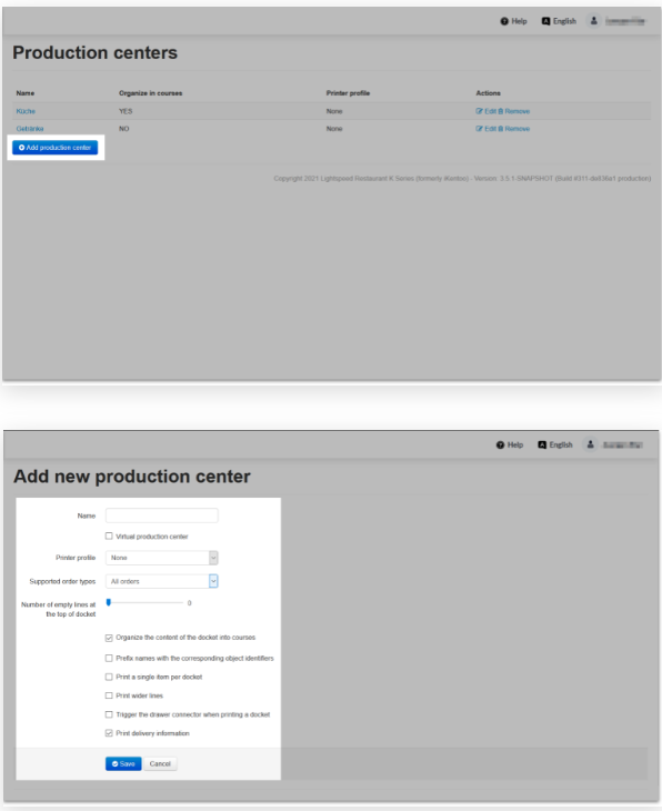 - Selecteer Opslaan om het productiecentrum toe te voegen aan de backoffice.