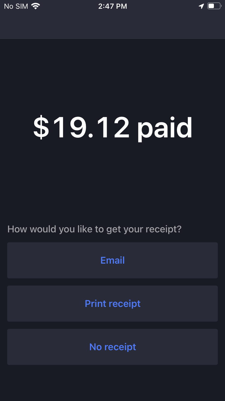 - Tik op Betalen zodat de klant wordt gevraagd om met een kaart of contactloze betaalmethode te tikken om de betaling te voltooien.