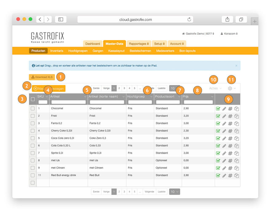 Een product bestaat uit een veeltal van informatie, welk u u hier kunt wijzigen. Het wijzigen en toevoegen van producten kunt u snel en eenvoudig doorvoeren met behulp van de invoergrid.