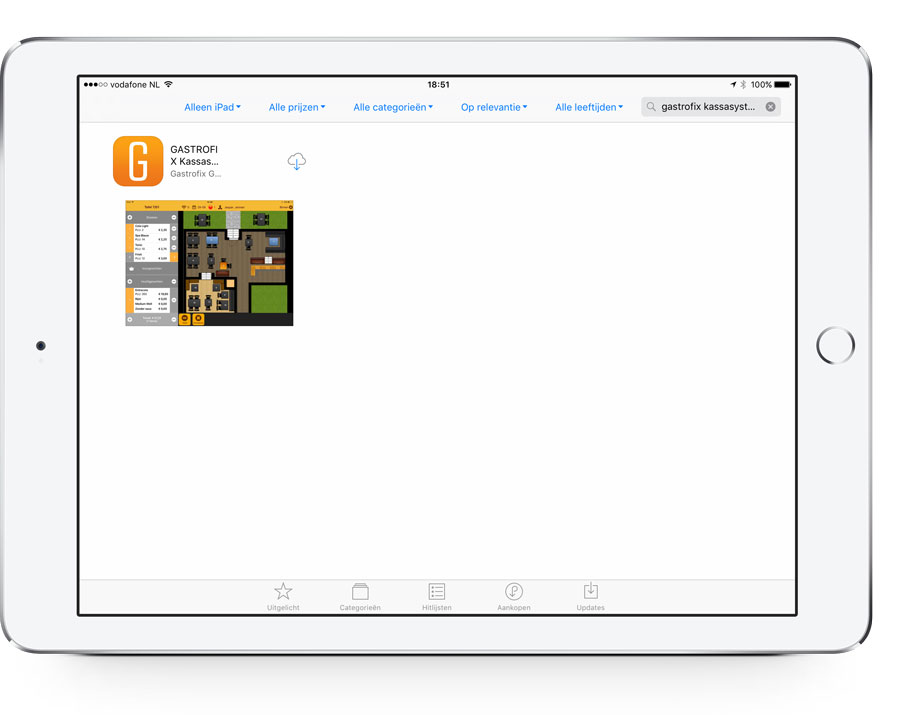 Nadat u de App heeft verwijderd opent u de App Store en geeft u "Gastrofix kassa" in de zoekbalk in.