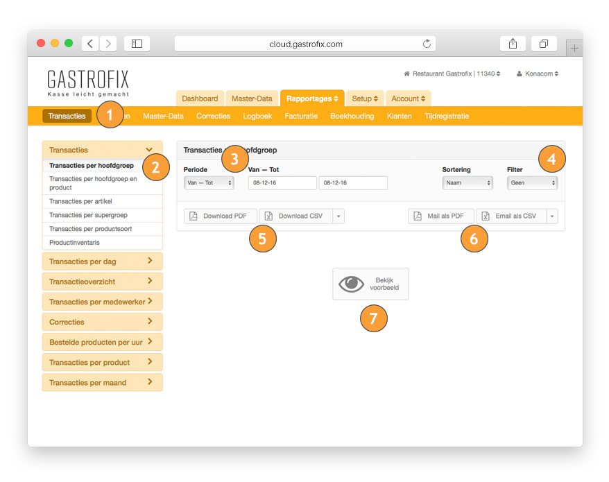 Rapportages zijn een esentieel onderdeel bij ieder bedrijf. Hiervoor beschikt de Gastrofix Cloud over een grote verscheidenheid aan rapportages met verschillende filtermogelijkheden. U kunt transacties, omzetten en meldingen uit de app analyseren en downloaden. Wanneer uw kassa’s verbonden zijn met internet worden alle gegevens uit de cloud iedere 60 seconden met de kassa (iPad/ iPod) gesychroniseerd.
